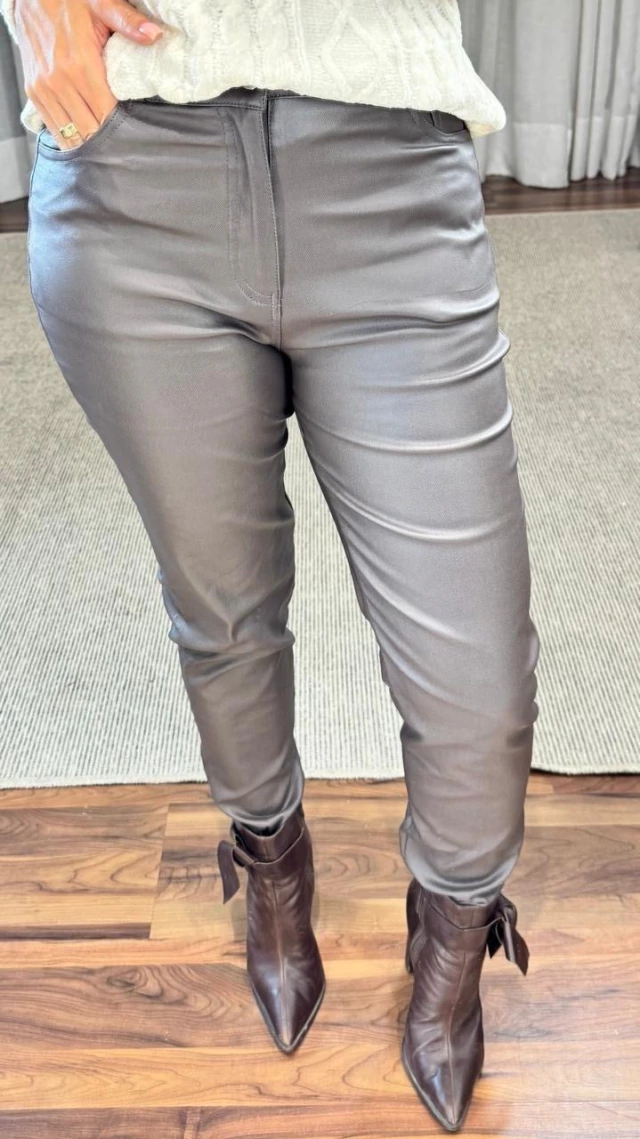 Moderna e cheia de atitude, a calça feminina skinny encerada é a peça perfeita para compor looks marcantes. Com acabamento que imita o couro, ela traz brilho sutil e toque sofisticado, ideal para produções noturnas ou urbanas. O modelo ajustado valoriza a silhueta, enquanto o tecido com elasticidade garante conforto e liberdade de movimento. Combine com blusas leves ou jaquetas para um visual poderoso.